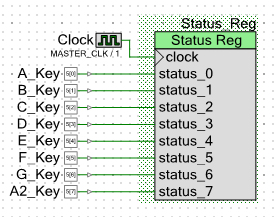 You’ll remember from the hardware overview that we connected 8 pushbuttons to a row of analog pins on the FreeSoC board. In order to read the status of these buttons, we need to route them internally to something called a status register. The status register accumulates the status of up to 8 digital pins and allows you to fetch them using simple function calls in the firmware. Every time we call Status_Reg.Read() it will return an 8-bit number that represents whether each pin is high or low.