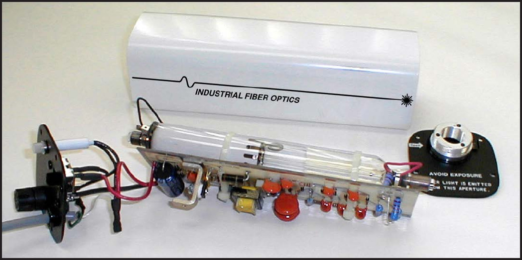 Industrial Fiber Optics (IFO) helium-neon lasers emit a beam of visible orange-red light. They do not emit invisible, exotic, or otherwise