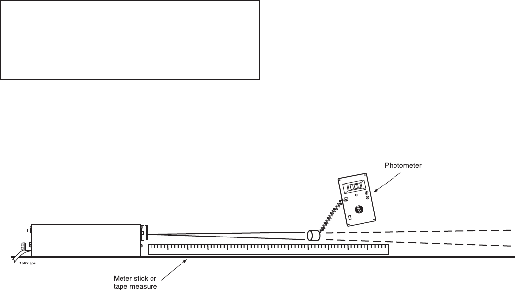 in case of deliberate, longterm direct staring into the beam. Safety features include a pilot lamp that glows when the electrical power is ON