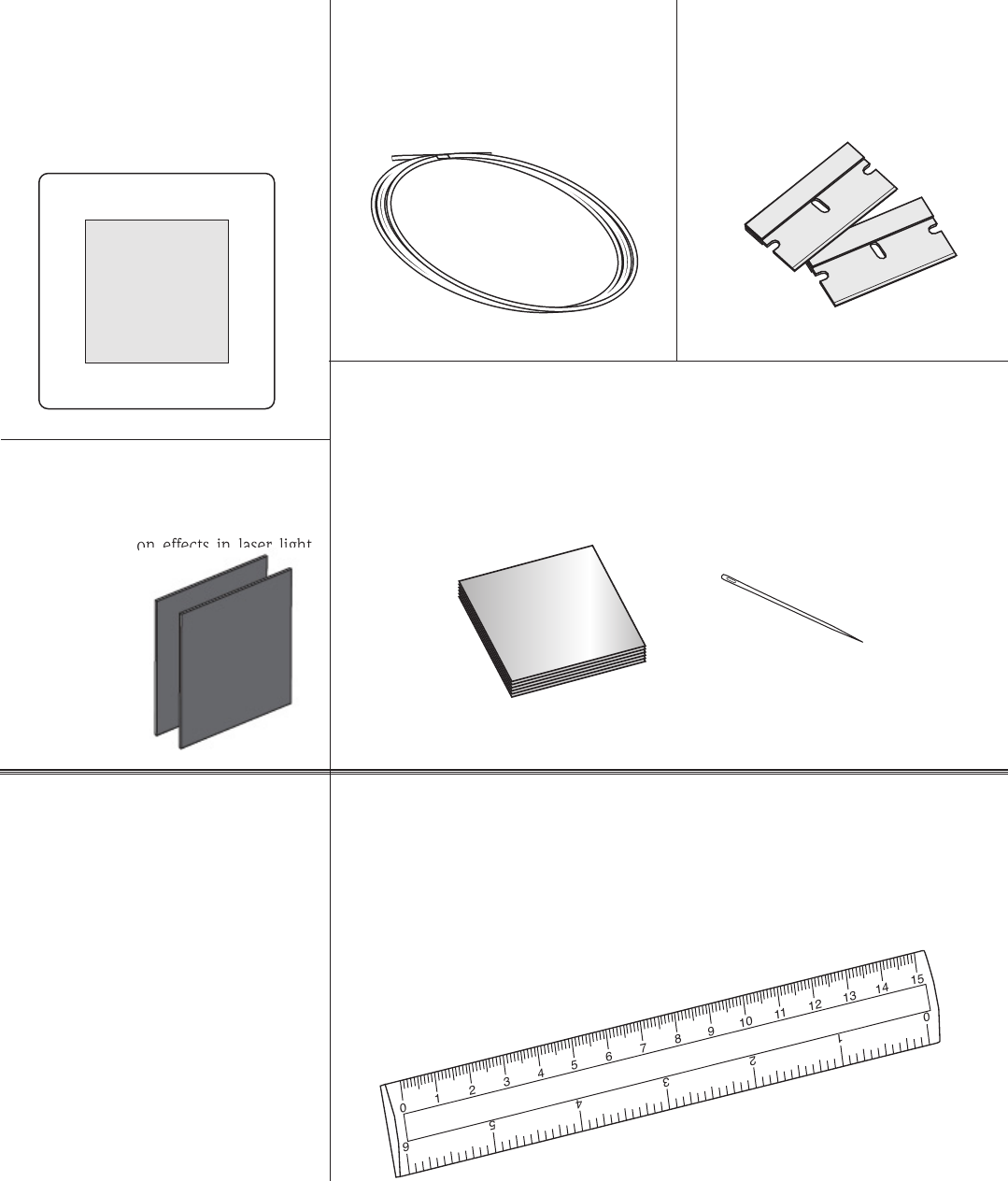 1. Since optics kits contain glass pieces, it is important to remember that they can present a cutting hazard. Please handle them carefully