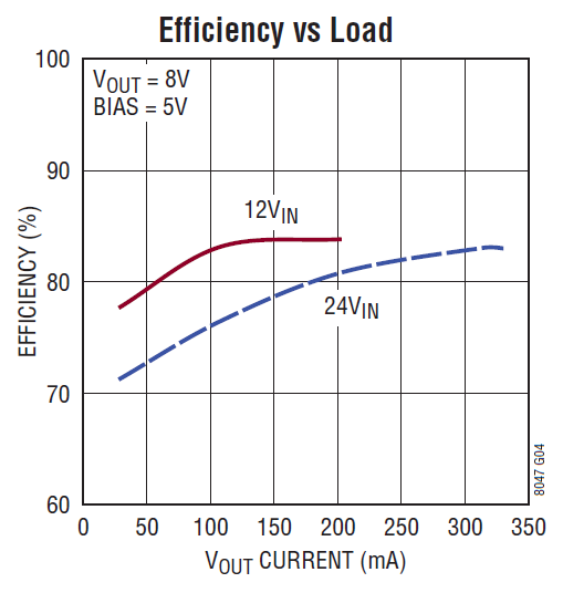 >83%, 12V in, 8V @ 100 ~ 200 mA