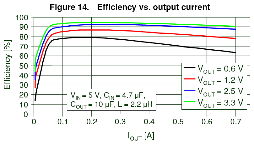 >90%, 5V in, 3.3V @ 50 ~ 700 mA