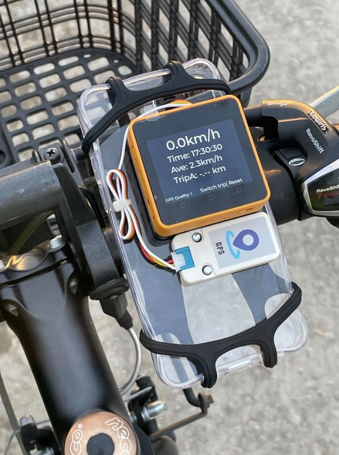The system is quite simple. It consists of an ESP32 (M5StickC Plus) as the main unit, a GPS module (Mini GPS/BDS Unit), and an electronic magnetometer (based on the GY-271 chip). Everything is packed together and not bigger than a big pen.