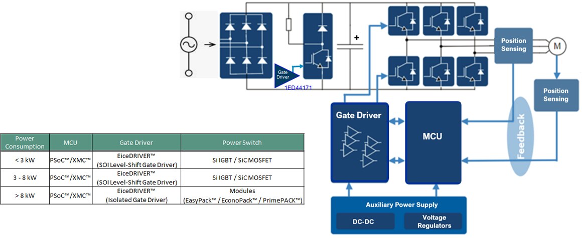 Infineon offers a comprehensive portfolio of EiceDRIVER™ gate driver ICs with a variety of configurations, voltage classes, isolation levels, protection features, and package options. EiceDRIVER™ gate driver ICs are complementary to Infineon IGBT discretes and modules, silicon (CoolMOS™, OptiMOS™ and StrongIRFET™) and silicon carbide MOSFETs (CoolSiC™), gallium nitride HEMTs (CoolGaN™), or as part of integrated power modules (CIPOS™ IPM and iMOTION™ smart IPM).