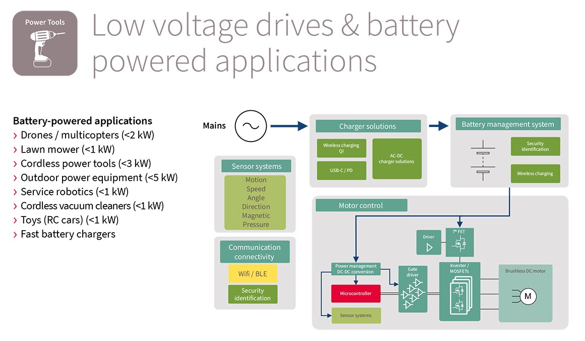 Millions of households rely on power tools for daily tasks. Consumers want robust, reliable, portable tools with low price and long battery life. Infineon's innovative portfolio provides safety features and meets consumer needs for all power tool applications, while reducing costs.